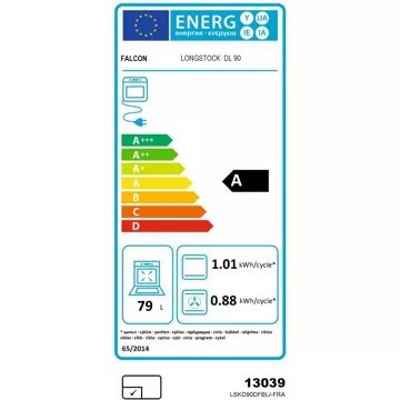 - Valeurs du label énergie : Label énergie A, Consommation en convection naturelle 0,88 kW, Consommation en chaleur tournante 0,79 kW