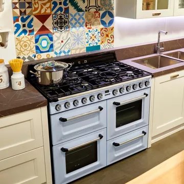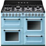 Le Piano de cuisson gaz SMEG TR4110AZ se distingue par son esthétique Victoria, offrant un design rétro Bleu Azur qui apporte une touche d’élégance à toute cuisine. Doté d’un plan de cuisson gaz avec 7 foyers, dont un ultra-rapide double commande de 4200W, ce piano de cuisson est parfait pour les chefs exigeants. Les cavités du four principal et secondaire, toutes deux classées A en efficacité énergétique, proposent une chaleur tournante et une chaleur brassée respectivement, assurant une cuisson homogène et économique. Avec des fonctions de nettoyage VaporClean, l’entretien devient un jeu d’enfant, tandis que les multiples programmes et fonctions de cuisson traditionnelle répondent à tous les besoins culinaires.