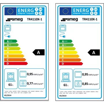 - Valeurs du label énergie : Label énergie A, Consommation en convection naturelle 0,85 kW, Consommation en chaleur tournante 0,77 kW