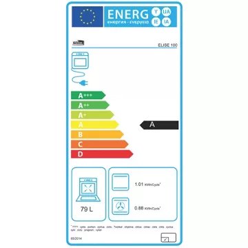 - Valeurs du label énergie : Label énergie A, Consommation en convection naturelle 0,78 kW, Consommation en chaleur tournante 0,88 kW