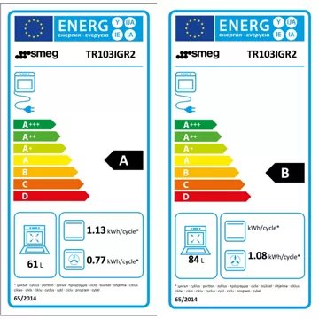 - Valeurs du label énergie : Label énergie A, Consommation en convection naturelle 1,08 kW, Consommation en chaleur tournante 0,77 kW