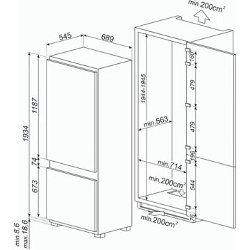 - Dimensions d’encastrement l x h x p : 71.4 x 194.5 x 56.3 cm