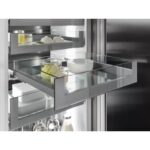 - Type de porte : à charnière auto porteuse( ou à pantographe ), l’habillage décoratif est fixé directement sur la porte du réfrigérateur. Avec ce système porte-sur-porte, elle peut s’ouvrir davantage et le système est plus robuste.