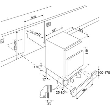 - Dimensions d’encastrement l x h x p : 60 x 82 x 55 cm