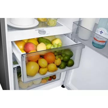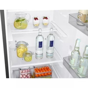Avec un volume net de 387 litres, le SAMSUNG RR39C76K3AP est conçu pour répondre aux besoins des familles en offrant un espace de stockage généreux et bien organisé. Les 5 clayettes, 7 balconnets de contre-porte, et les 2 tiroirs fruits et légumes, dont un tiroir HumidityFresh+, permettent une conservation optimale et une organisation efficace de vos aliments. La technologie Froid ventilé Intégral