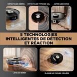 - Détection des marches / du vide : oui, permet d’éviter la chute de l’aspirateur