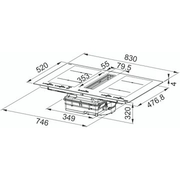 • Installation du kit recyclage sans gaine : permet une installation optimisée de votre table évitant ainsi l’utilisation de gaines et de coudes. L’extraction de l’air se fait directement dans le vide sanitaire de votre meuble.