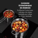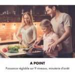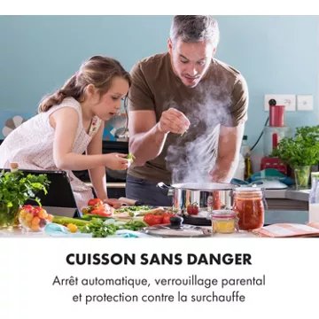 Sécurités : Arrêt auto, anti-surchauffe, verrouillage, détection récipient, témoins