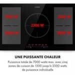 Puissance totale : 7 400 W – 5 foyers (dont zones flexibles combinables)